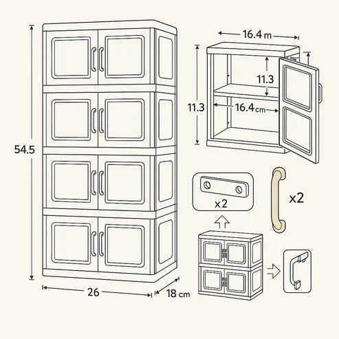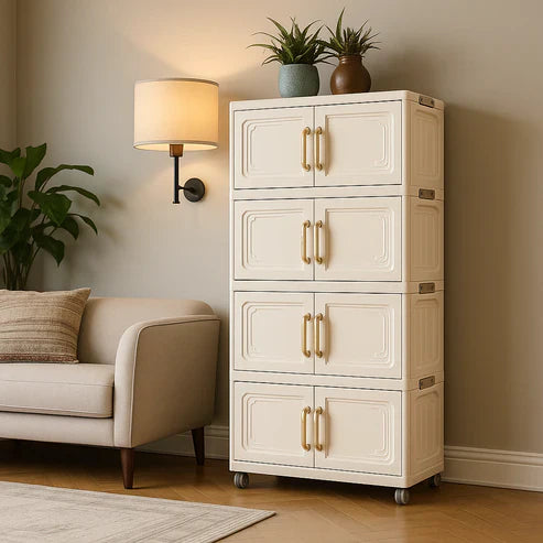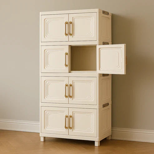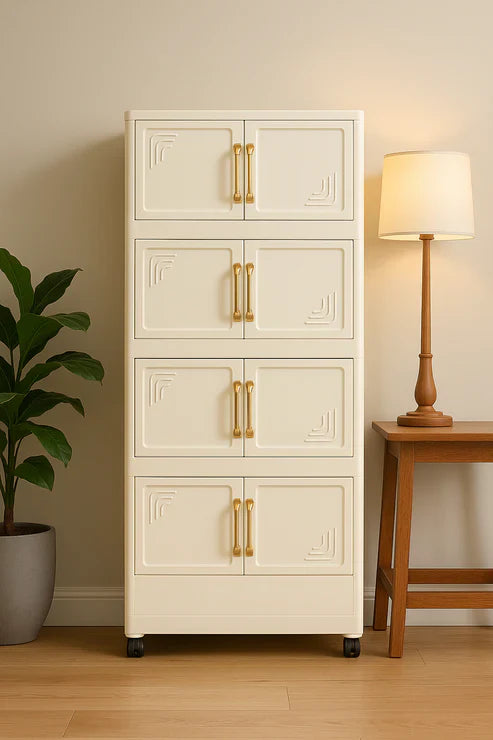 A 4-storey storage cabinet is a multi-layered organizer with four spacious compartments, perfect for storing clothes, toys, tools, or household items. Made from durable materials, it helps keep spaces neat and tidy. Ideal for bedrooms, kitchens, bathrooms, or offices. Stylish, practical, and space-saving.